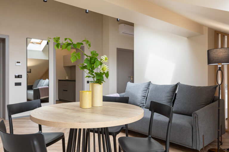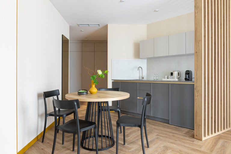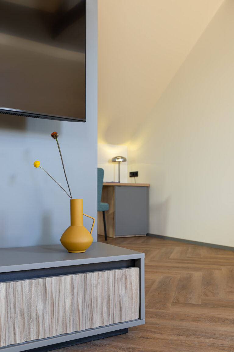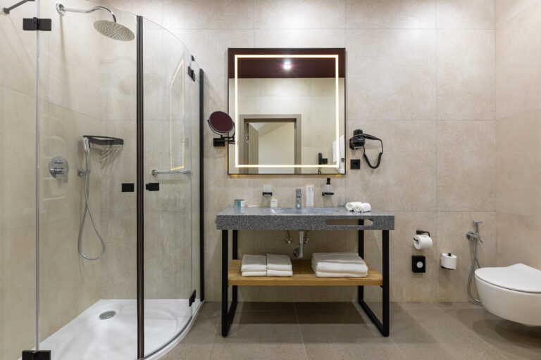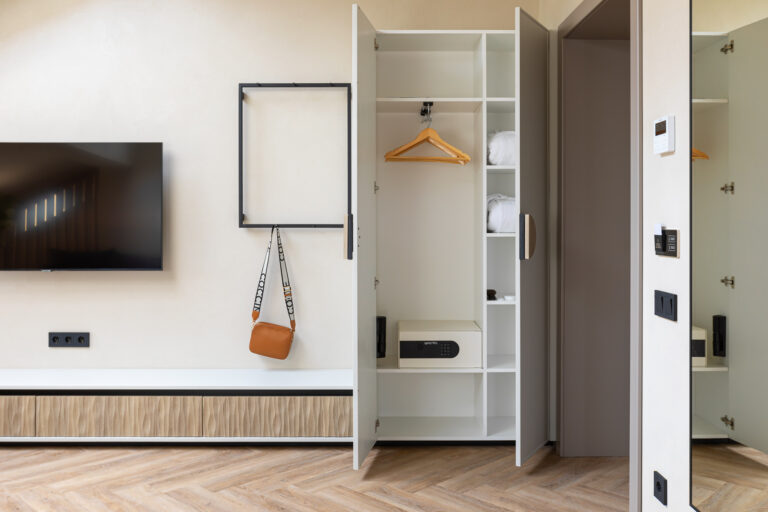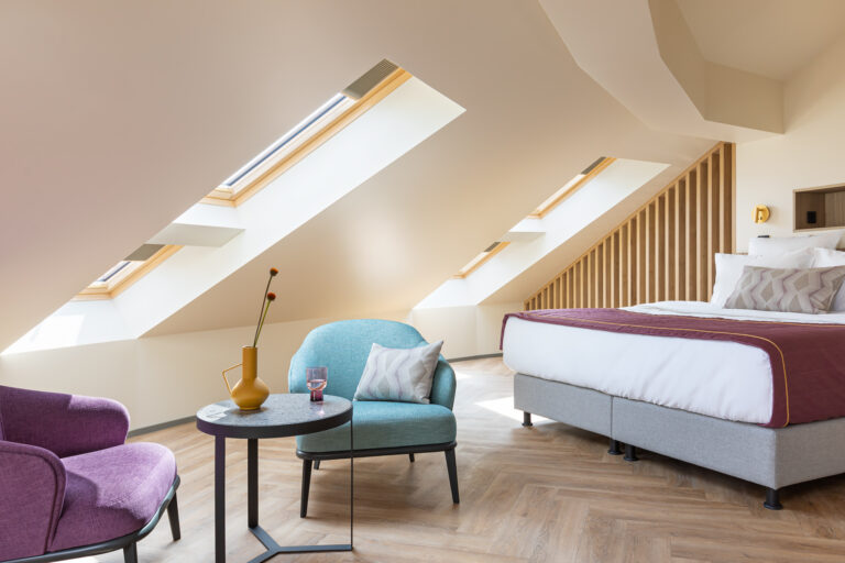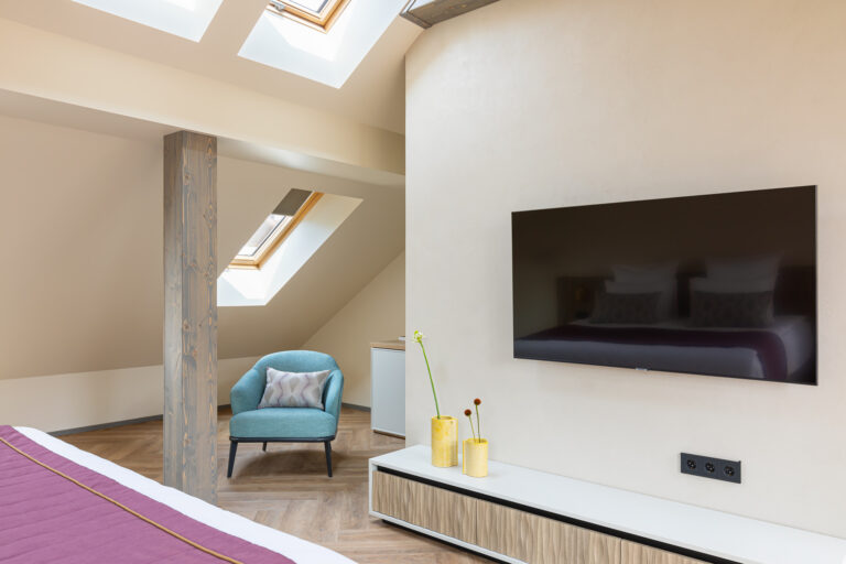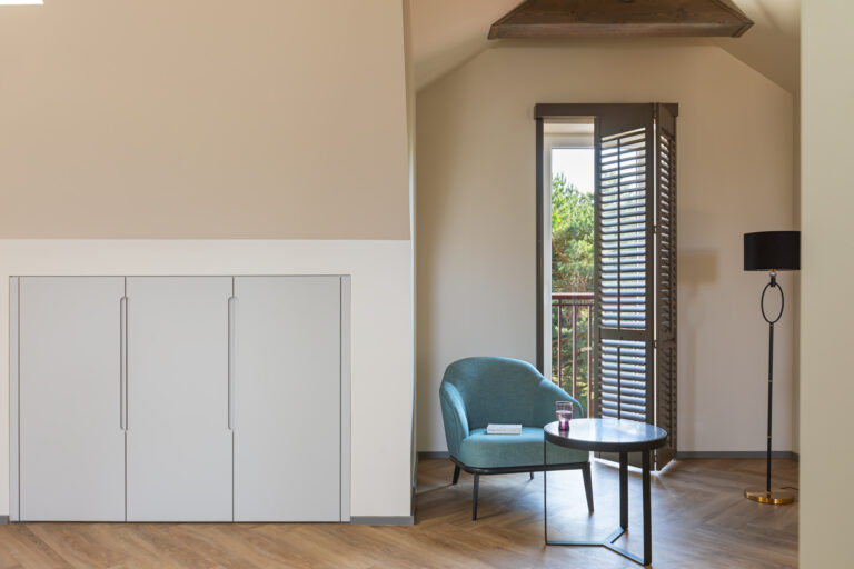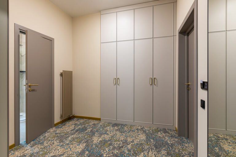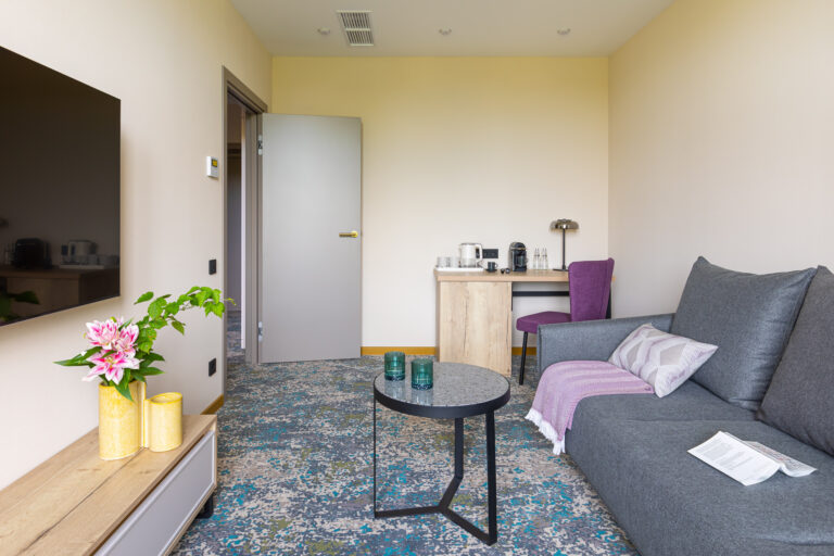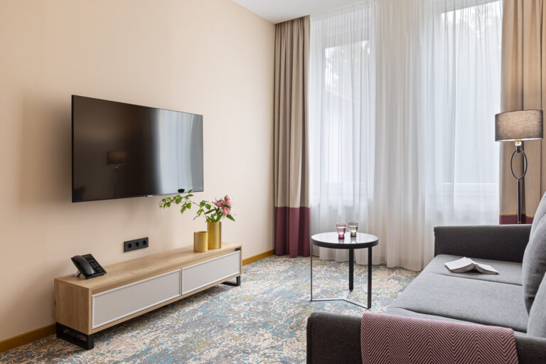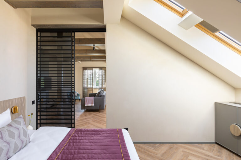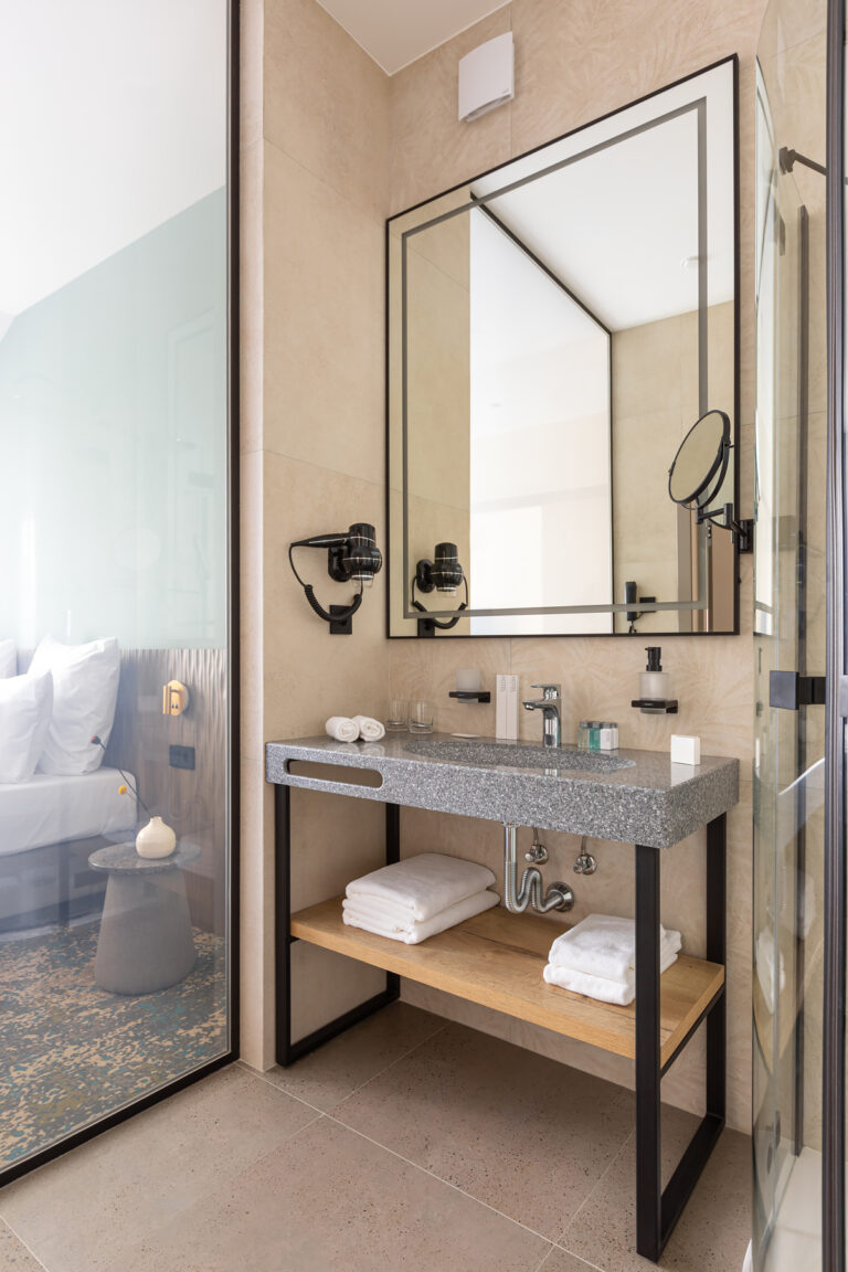 BERRY HOTEL & SPA 4* — не первый мой проект отеля, и я горжусь тем, что за свою карьеру мне удалось поработать с несколькими подобными пространствами. В этот раз мне предстояло создать масштабный дизайн-проект для отеля общей площадью около 4 000 кв. м — 6 этажей, 42 номера. Само название отеля — BERRY — диктует общий концепт, рождает различные ассоциации. Тем не менее мне хотелось уйти от очевидных ягодных образов в интерьере. Обыграть «природное» название удалось с помощью глубоких, насыщенных оттенков в интерьере; «ягодные» ассоциации поддерживает имитация лукошка — на ресепшене и в зоне барной стойки, а также стилизация потолка, напоминающего проступающий сквозь древесную листву свет, — в лобби.