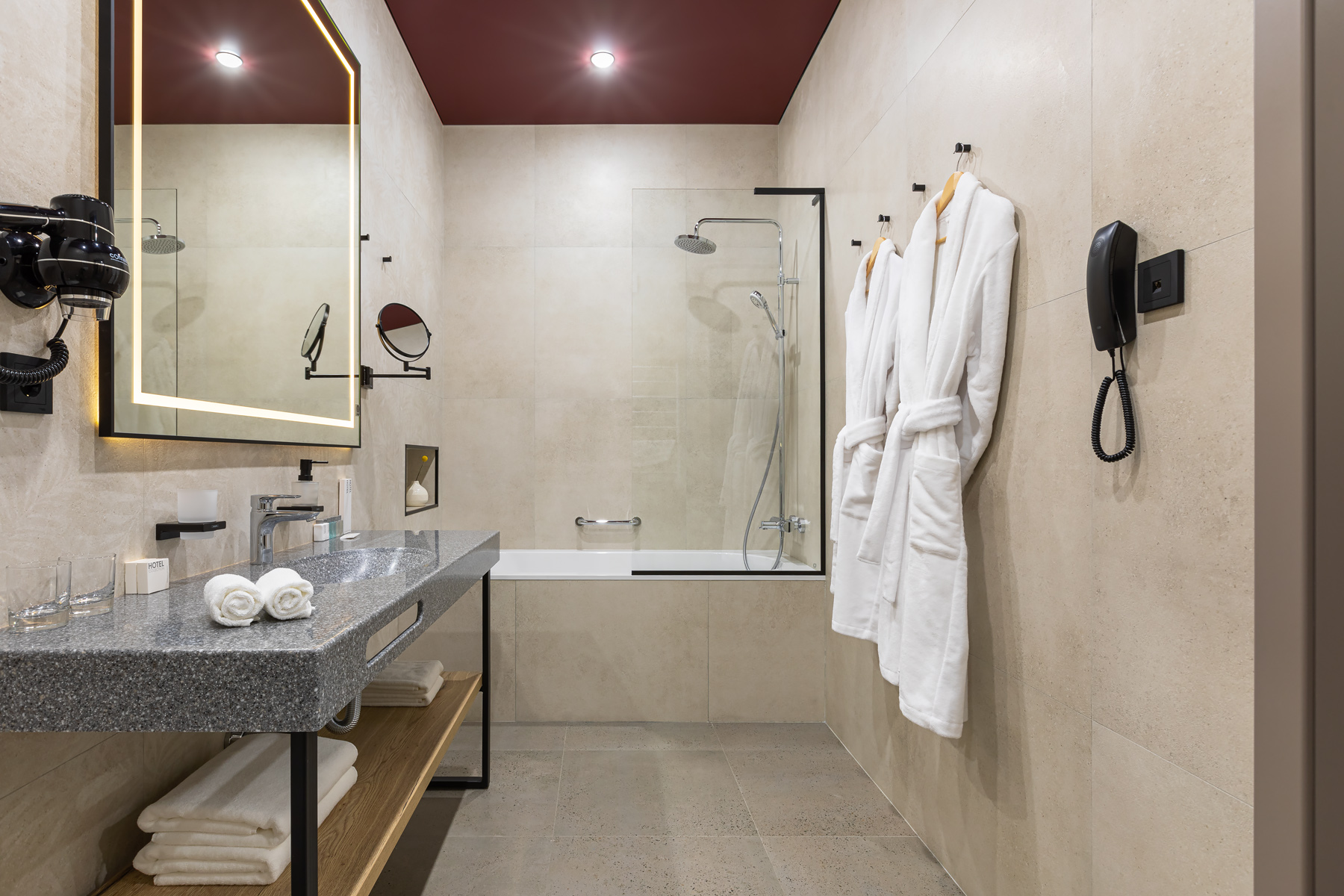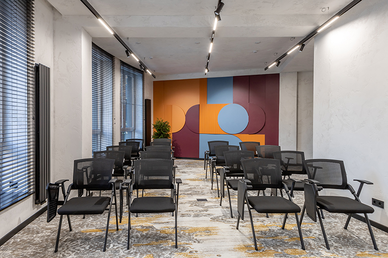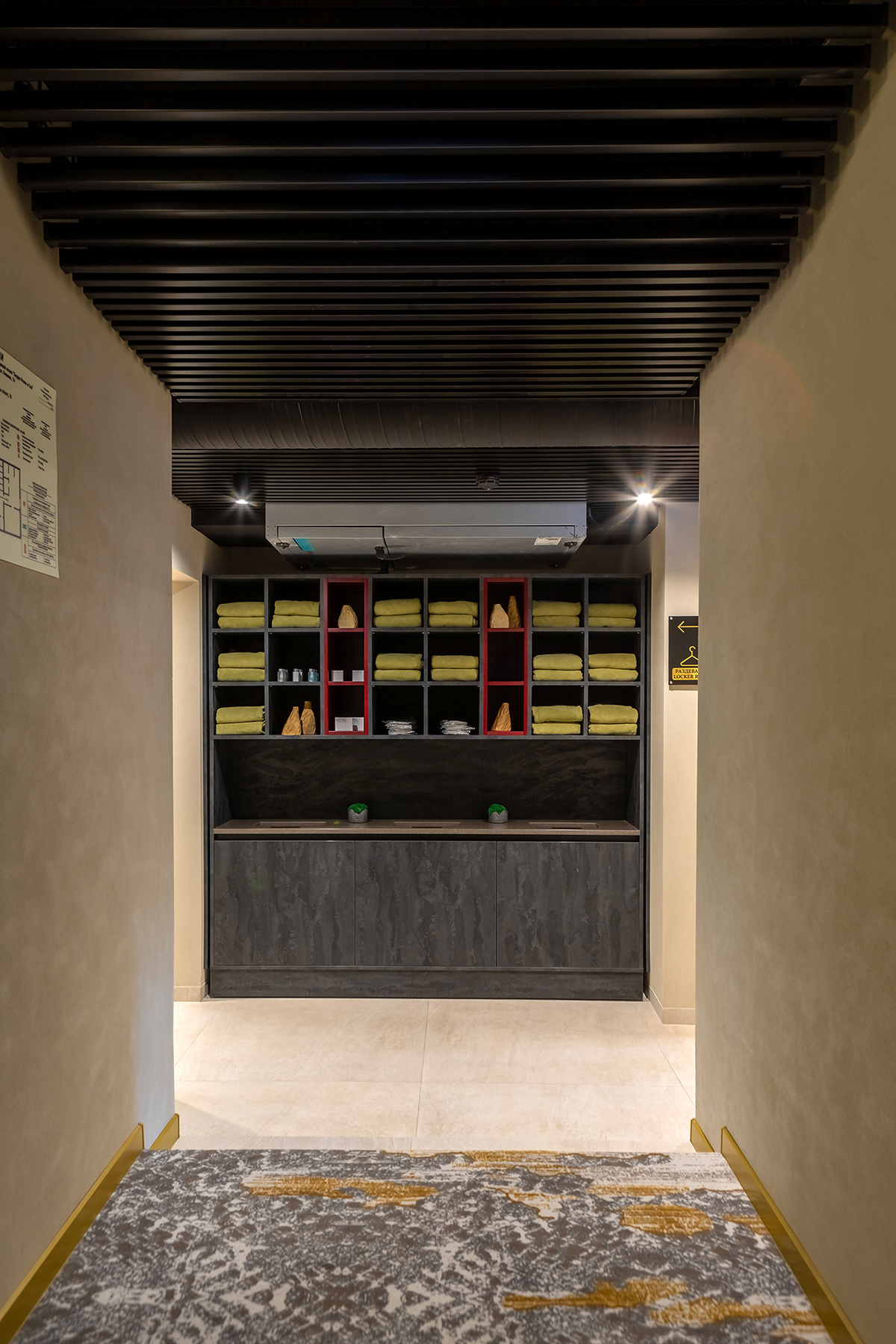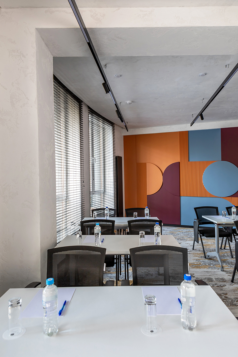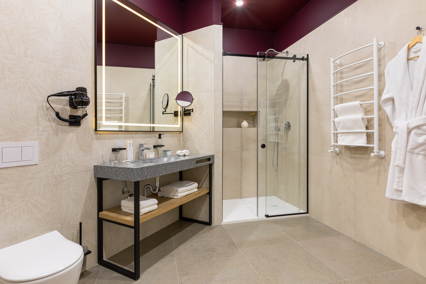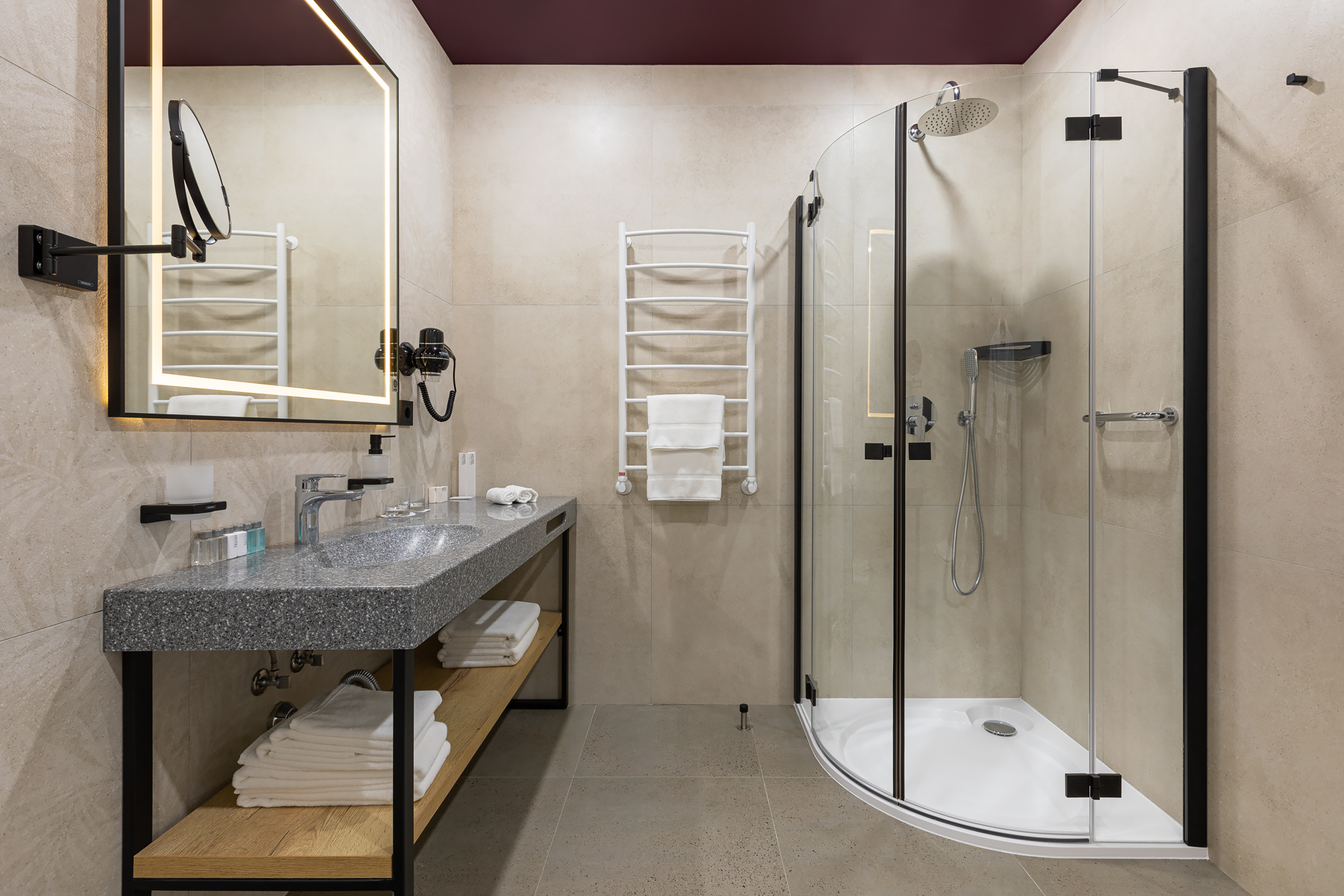 BERRY HOTEL & SPA 4* — не первый мой проект отеля, и я горжусь тем, что за свою карьеру мне удалось поработать с несколькими подобными пространствами. В этот раз мне предстояло создать масштабный дизайн-проект для отеля общей площадью около 4 000 кв. м — 6 этажей, 42 номера. Само название отеля — BERRY — диктует общий концепт, рождает различные ассоциации. Тем не менее мне хотелось уйти от очевидных ягодных образов в интерьере. Обыграть «природное» название удалось с помощью глубоких, насыщенных оттенков в интерьере; «ягодные» ассоциации поддерживает имитация лукошка — на ресепшене и в зоне барной стойки, а также стилизация потолка, напоминающего проступающий сквозь древесную листву свет, — в лобби.