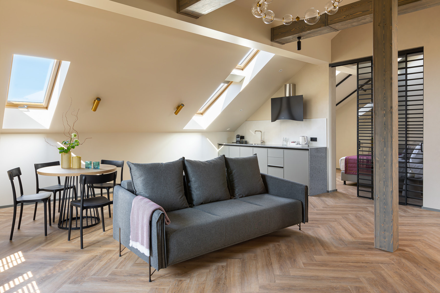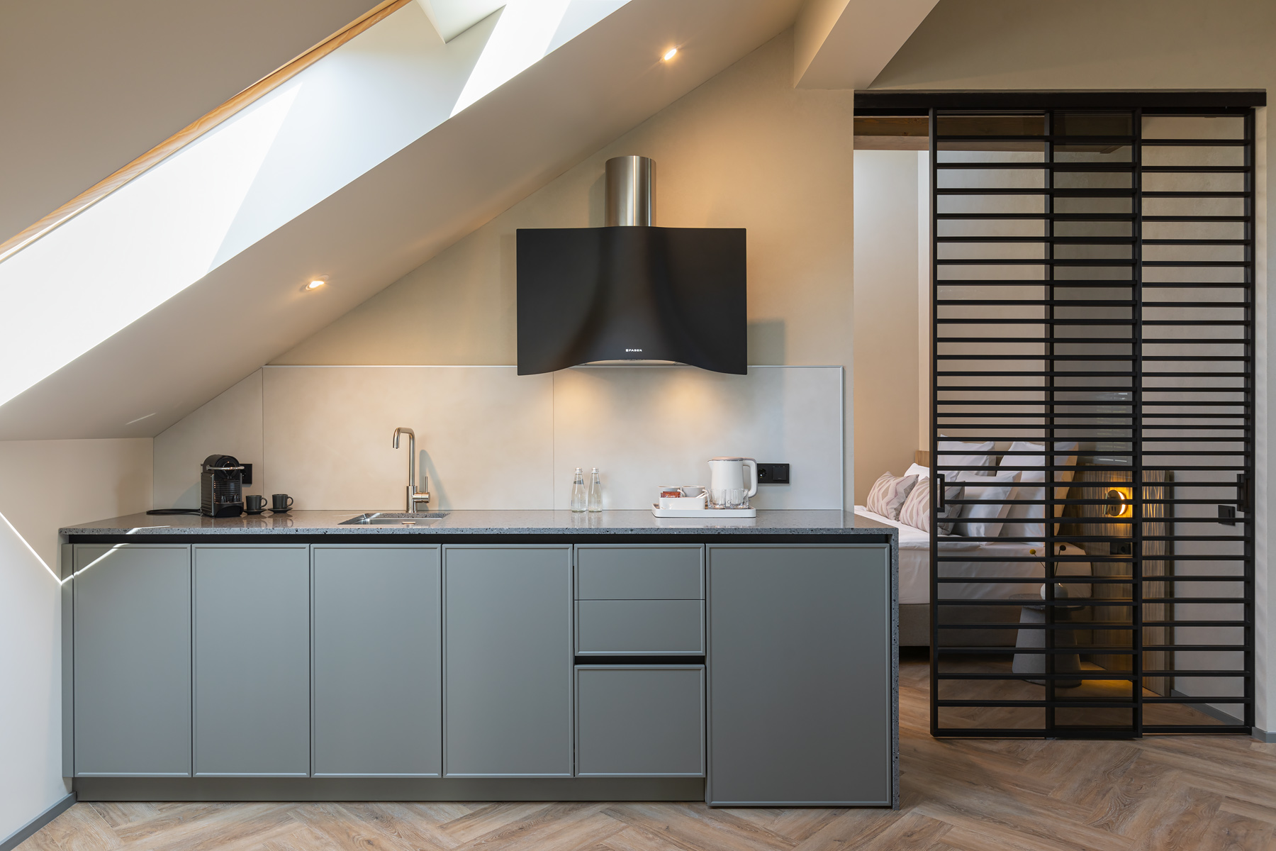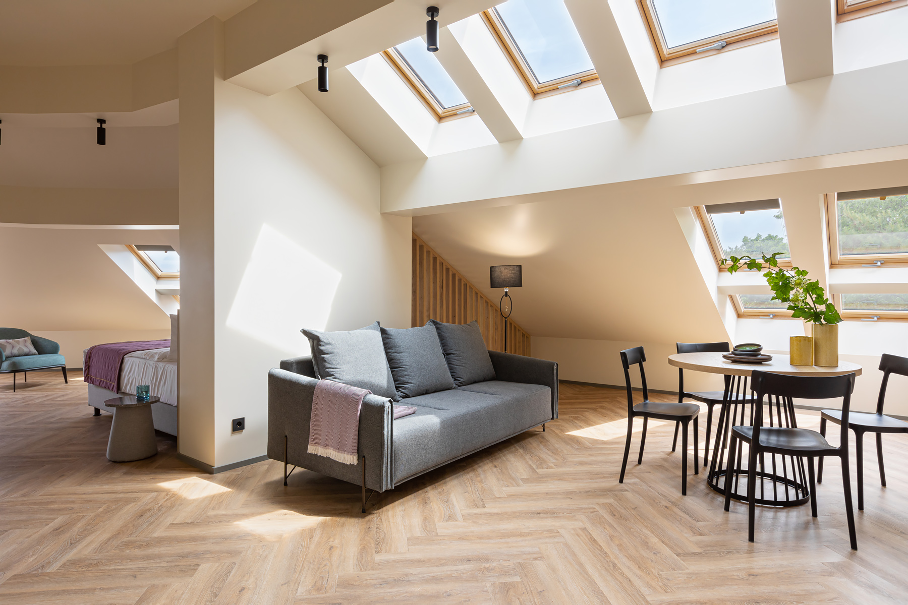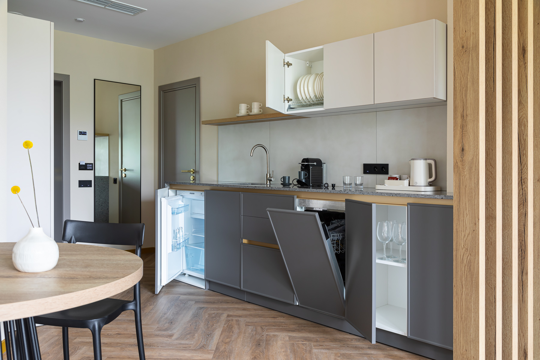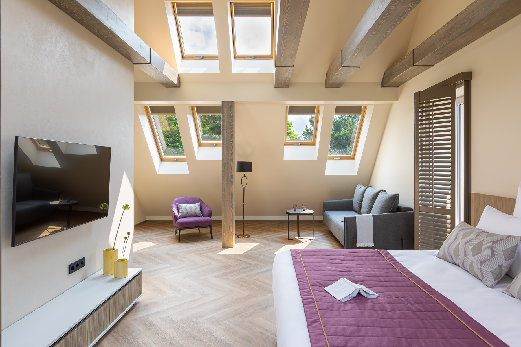 BERRY HOTEL & SPA 4* — не первый мой проект отеля, и я горжусь тем, что за свою карьеру мне удалось поработать с несколькими подобными пространствами. В этот раз мне предстояло создать масштабный дизайн-проект для отеля общей площадью около 4 000 кв. м — 6 этажей, 42 номера. Само название отеля — BERRY — диктует общий концепт, рождает различные ассоциации. Тем не менее мне хотелось уйти от очевидных ягодных образов в интерьере. Обыграть «природное» название удалось с помощью глубоких, насыщенных оттенков в интерьере; «ягодные» ассоциации поддерживает имитация лукошка — на ресепшене и в зоне барной стойки, а также стилизация потолка, напоминающего проступающий сквозь древесную листву свет, — в лобби.