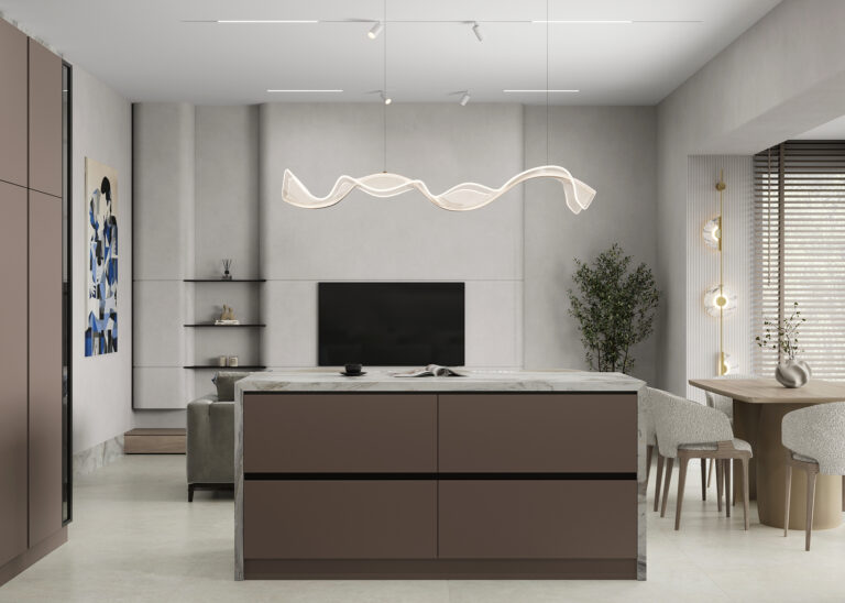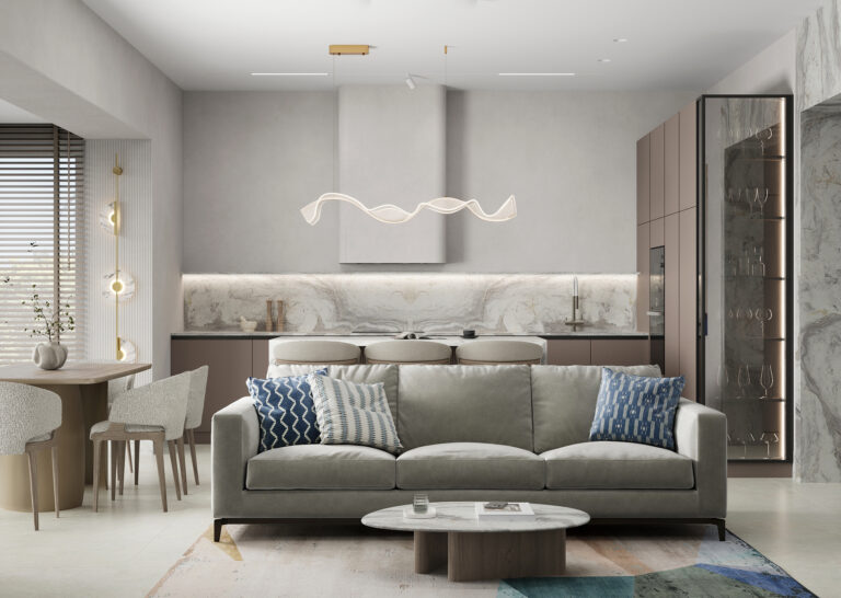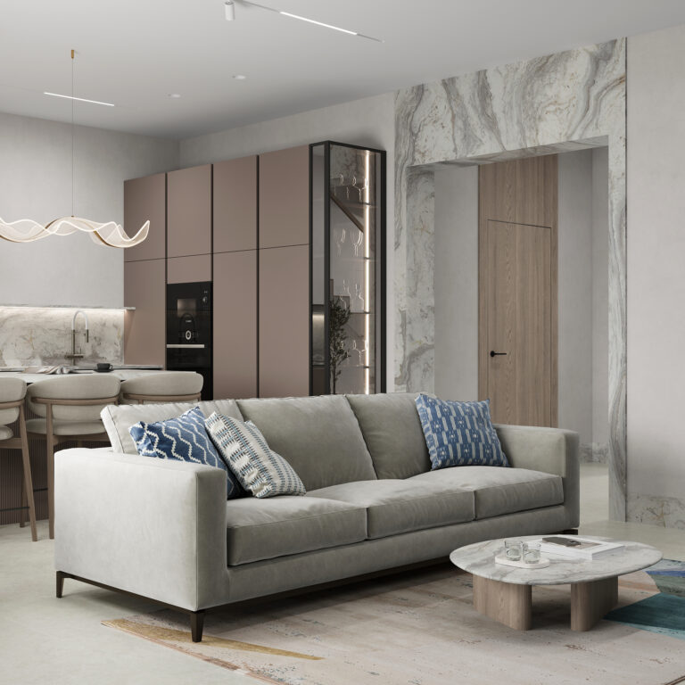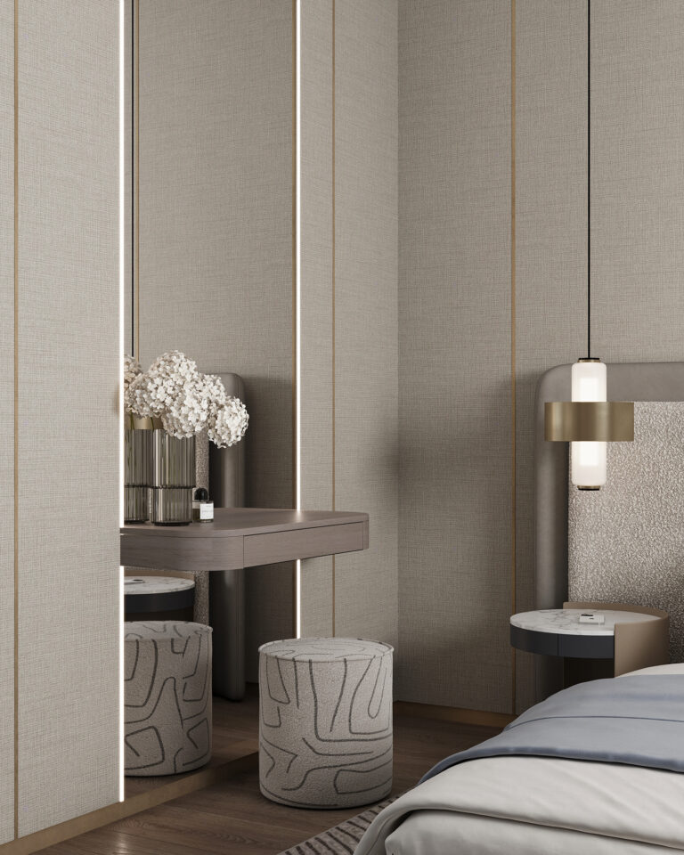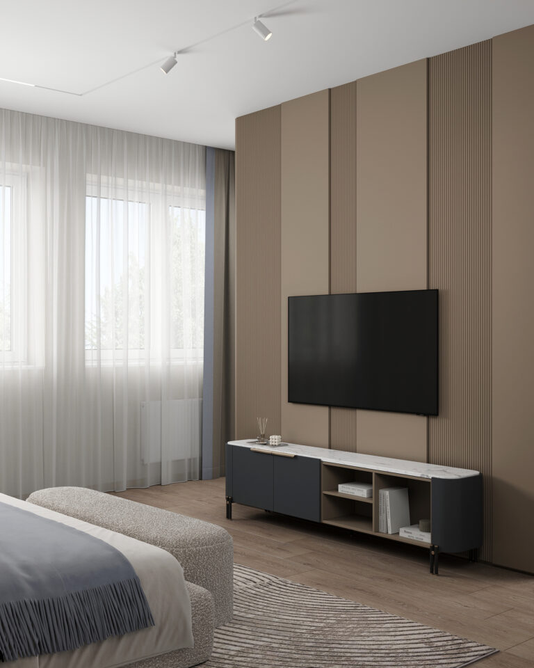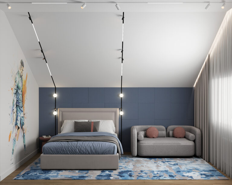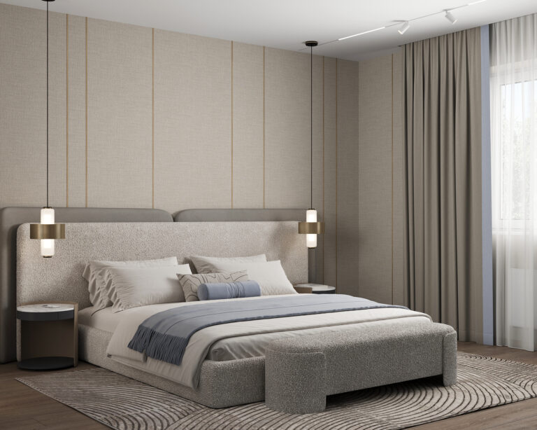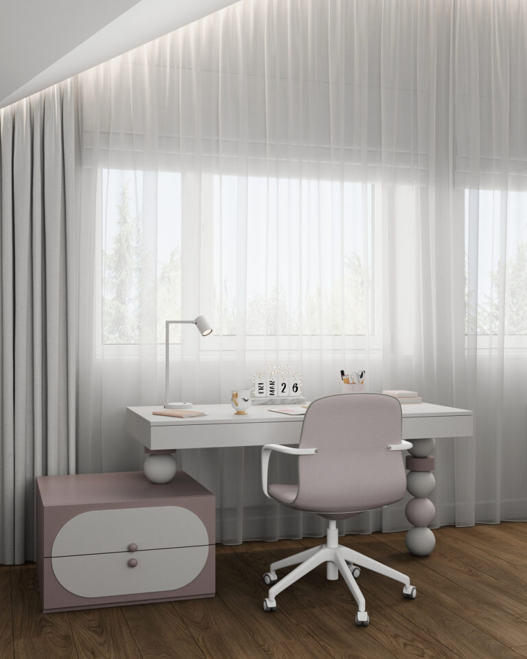 Современный скандинавский микс с японским ваби-саби. Акцент на естественных материалах, чистом воздухе, обилии света , обтекаемых формах и продуманных системах хранения, которые прячут детскую активность, сохраняя визуальный покой. Цель — создать уютное, «обволакивающее» гнездышко, где легко дышится и родителям, и детям.