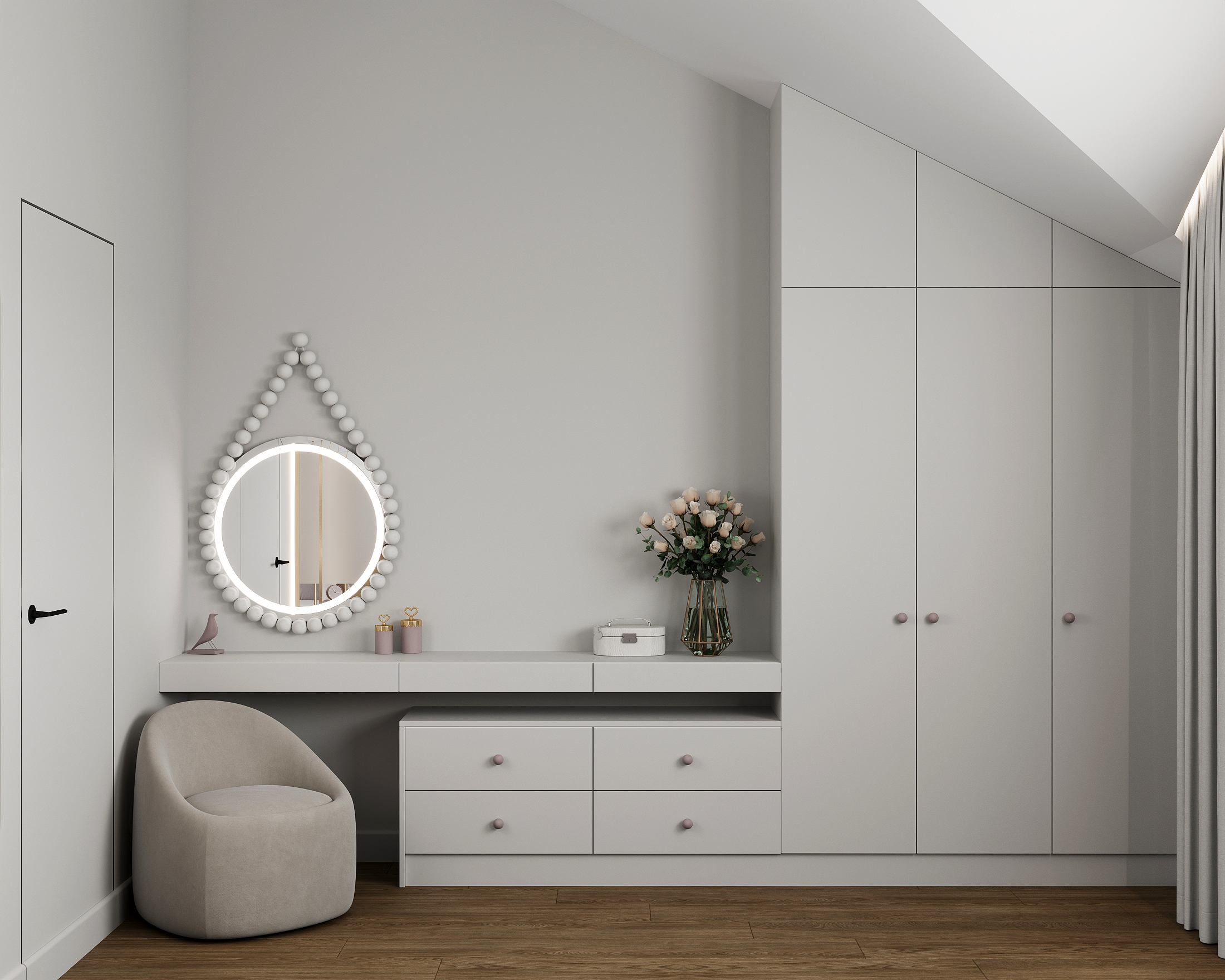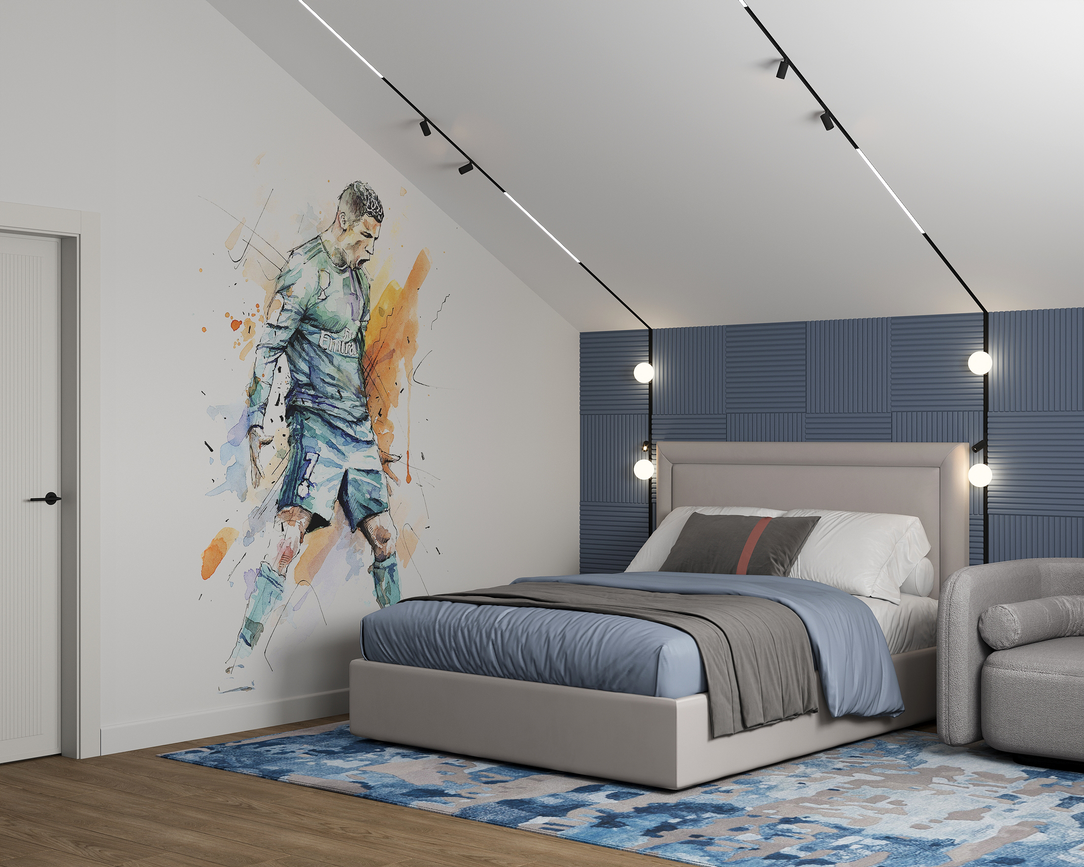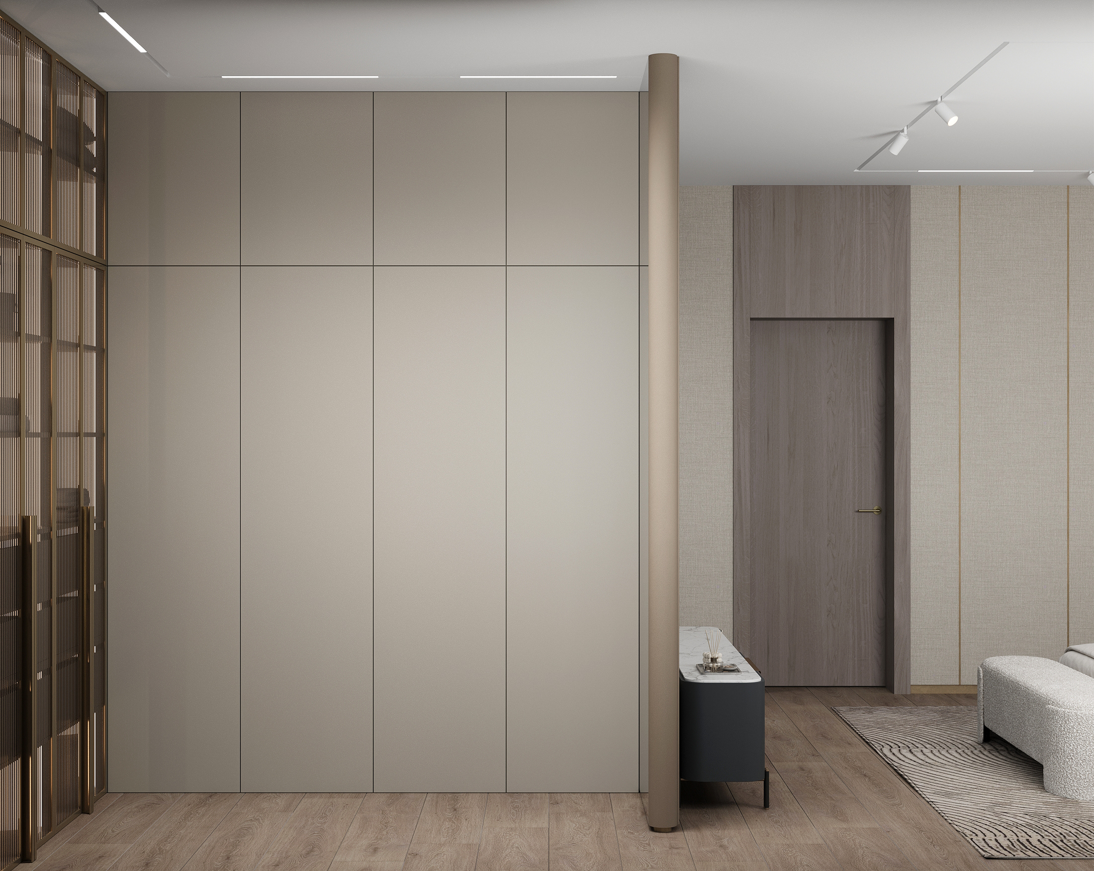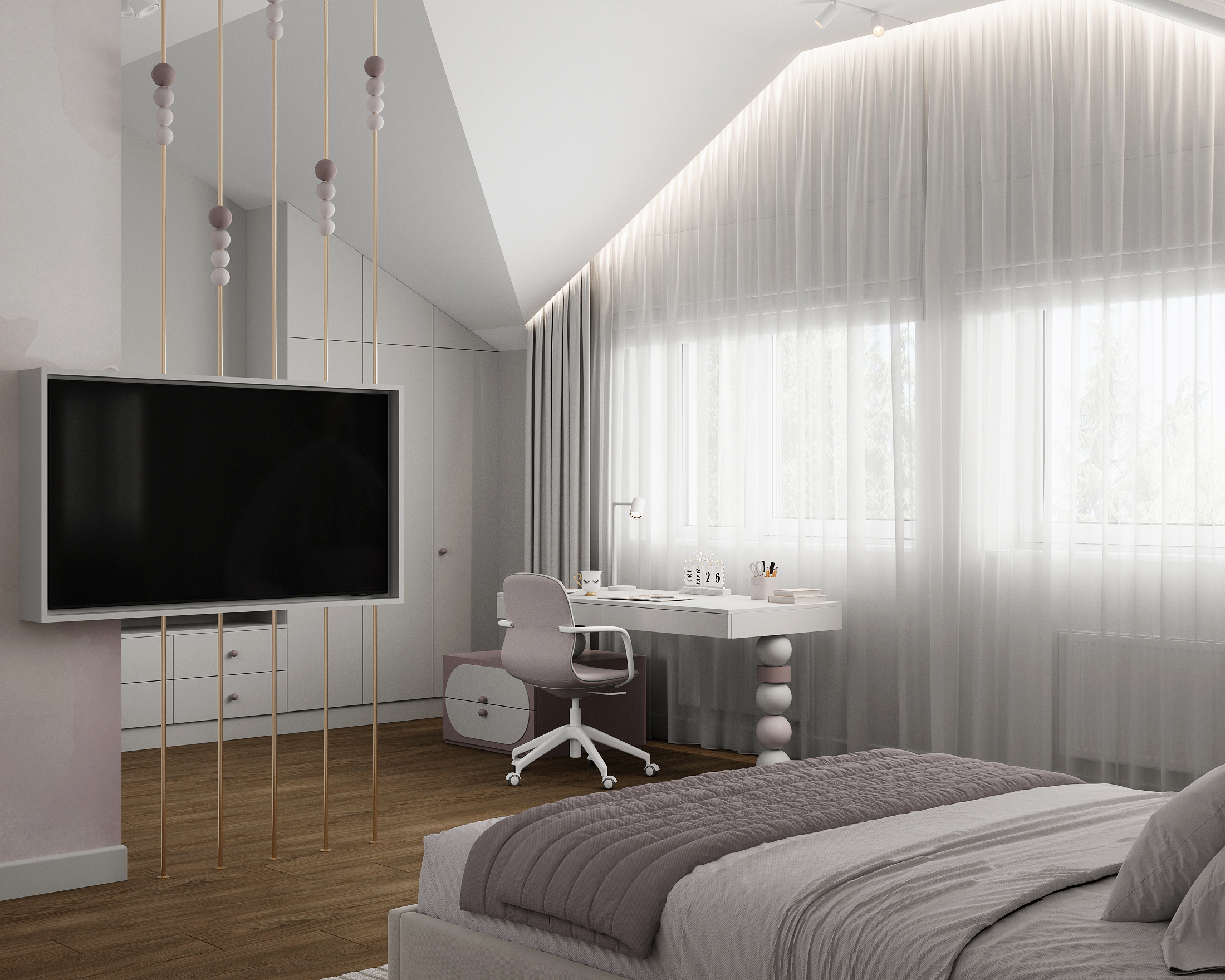 Современный скандинавский микс с японским ваби-саби. Акцент на естественных материалах, чистом воздухе, обилии света , обтекаемых формах и продуманных системах хранения, которые прячут детскую активность, сохраняя визуальный покой. Цель — создать уютное, «обволакивающее» гнездышко, где легко дышится и родителям, и детям.