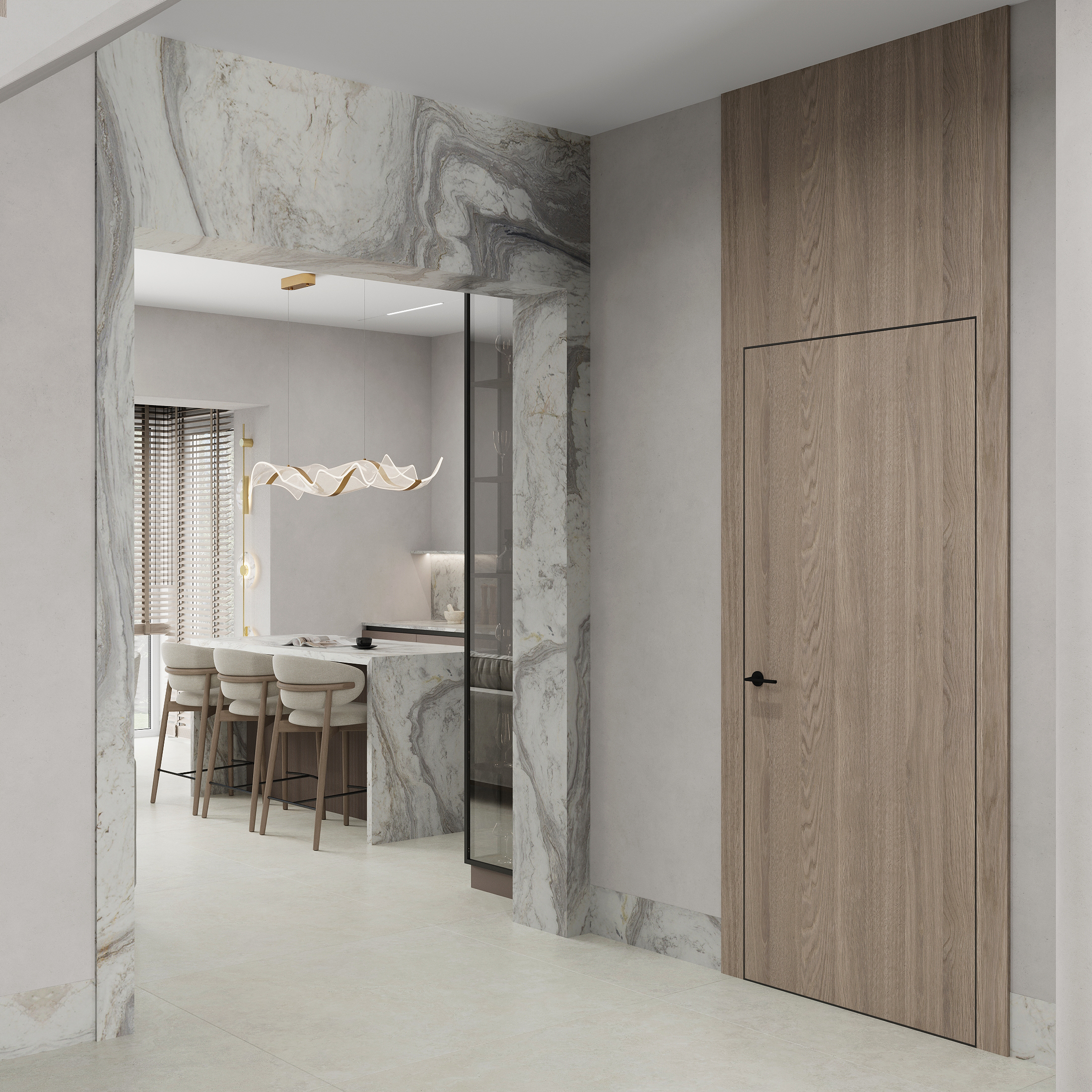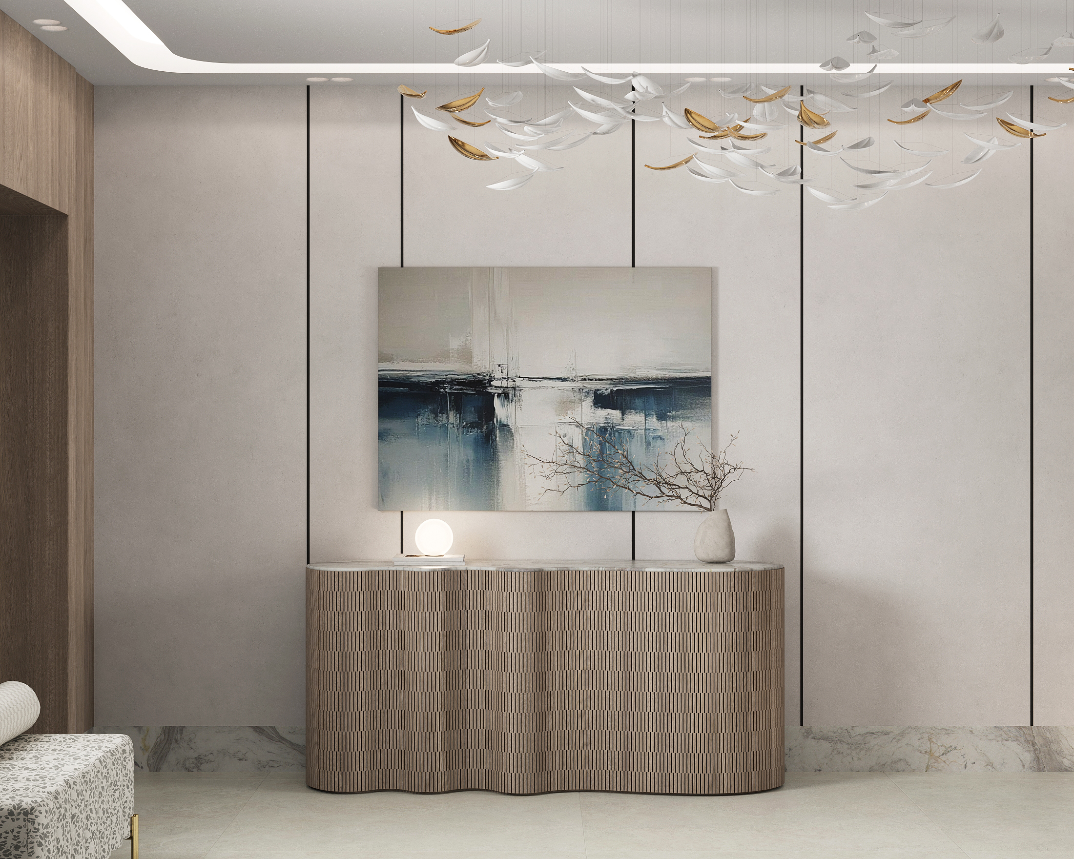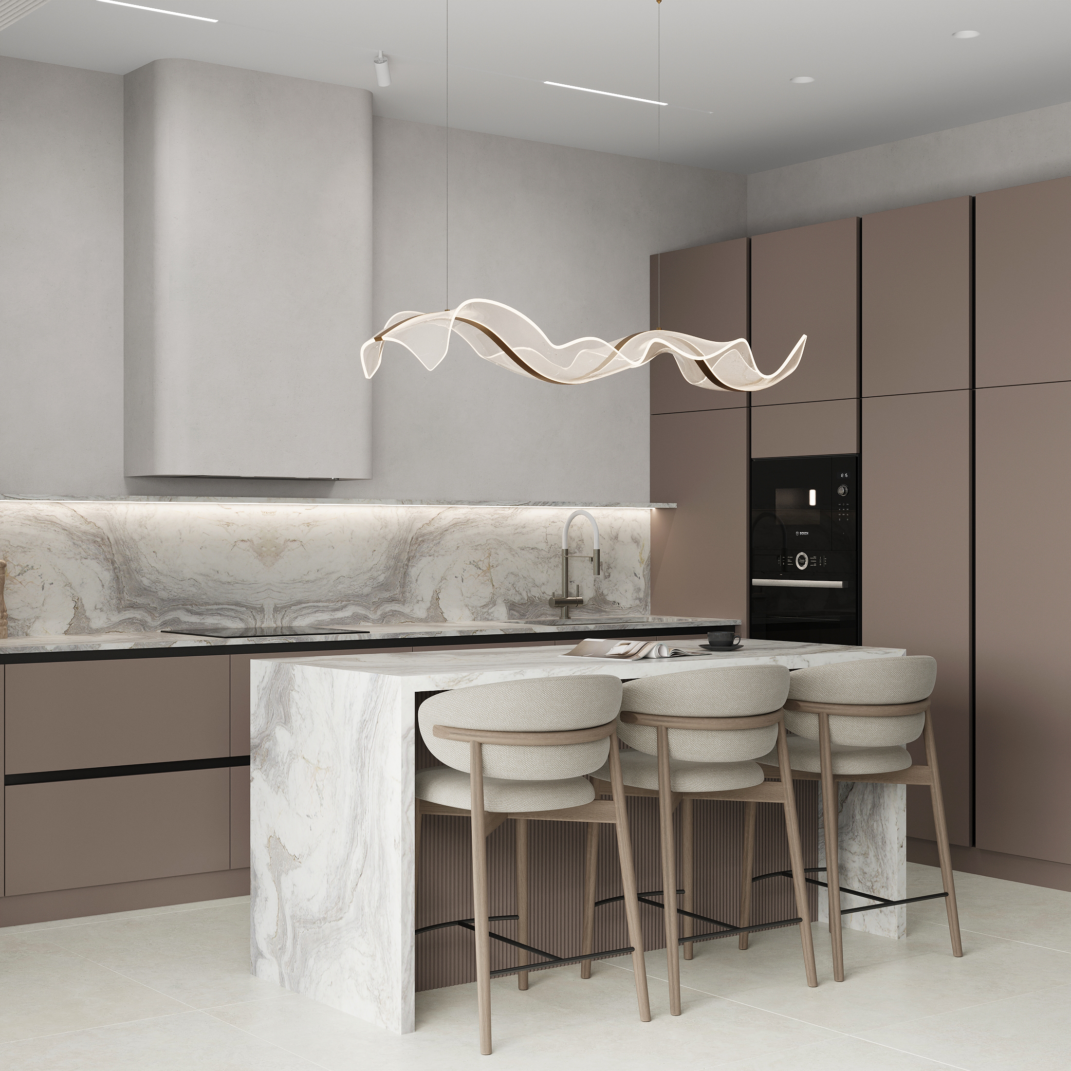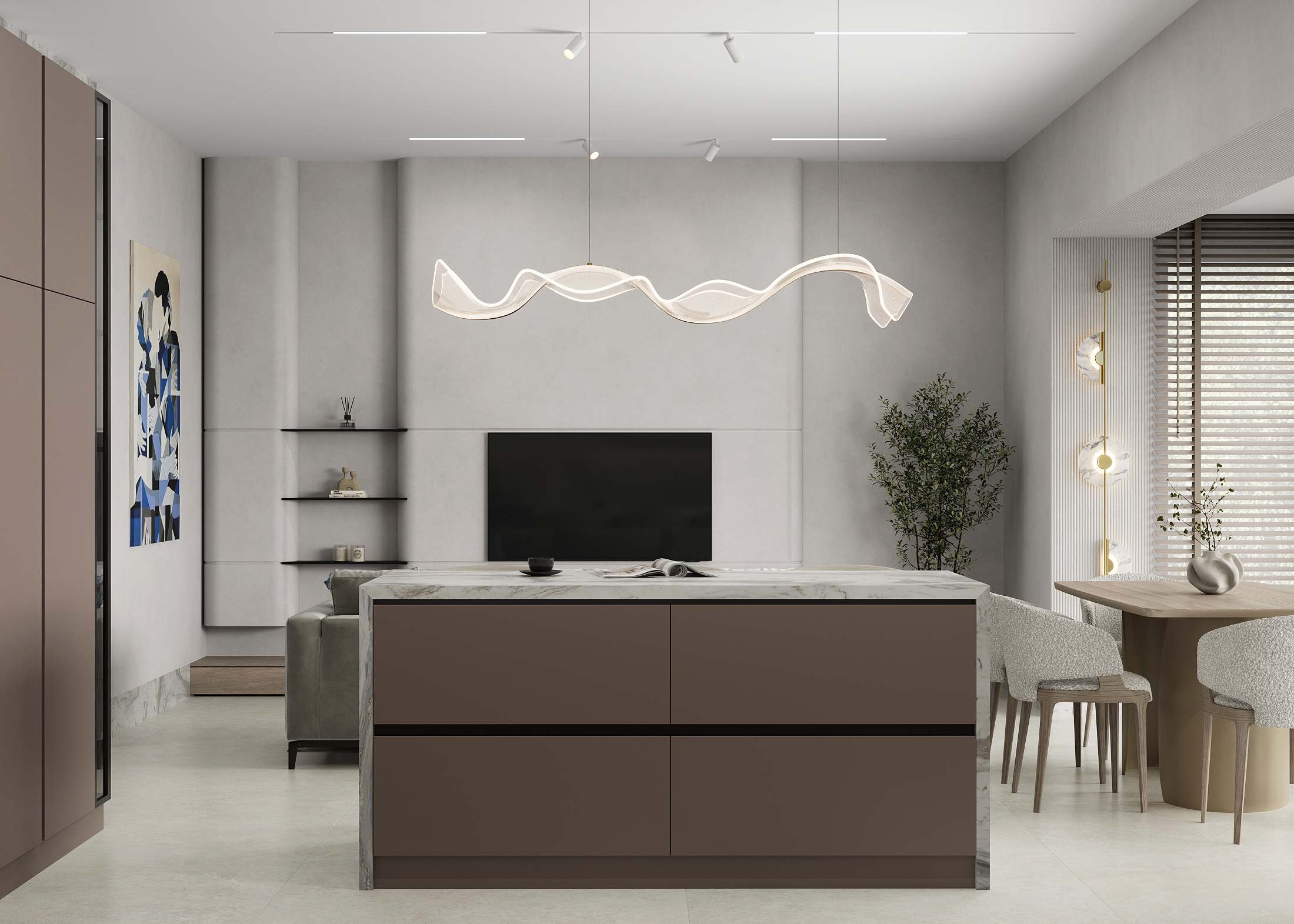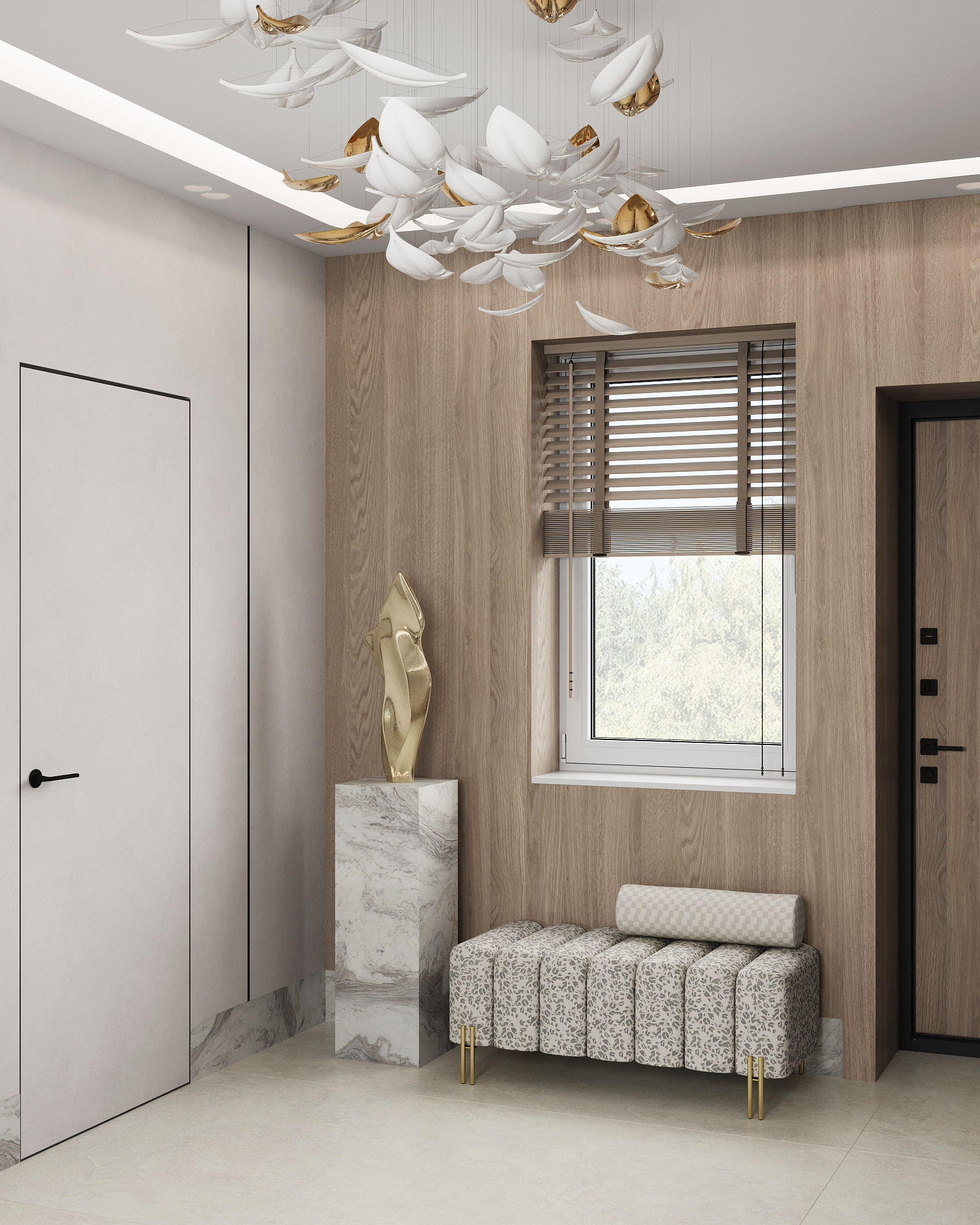 Современный скандинавский микс с японским ваби-саби. Акцент на естественных материалах, чистом воздухе, обилии света , обтекаемых формах и продуманных системах хранения, которые прячут детскую активность, сохраняя визуальный покой. Цель — создать уютное, «обволакивающее» гнездышко, где легко дышится и родителям, и детям.