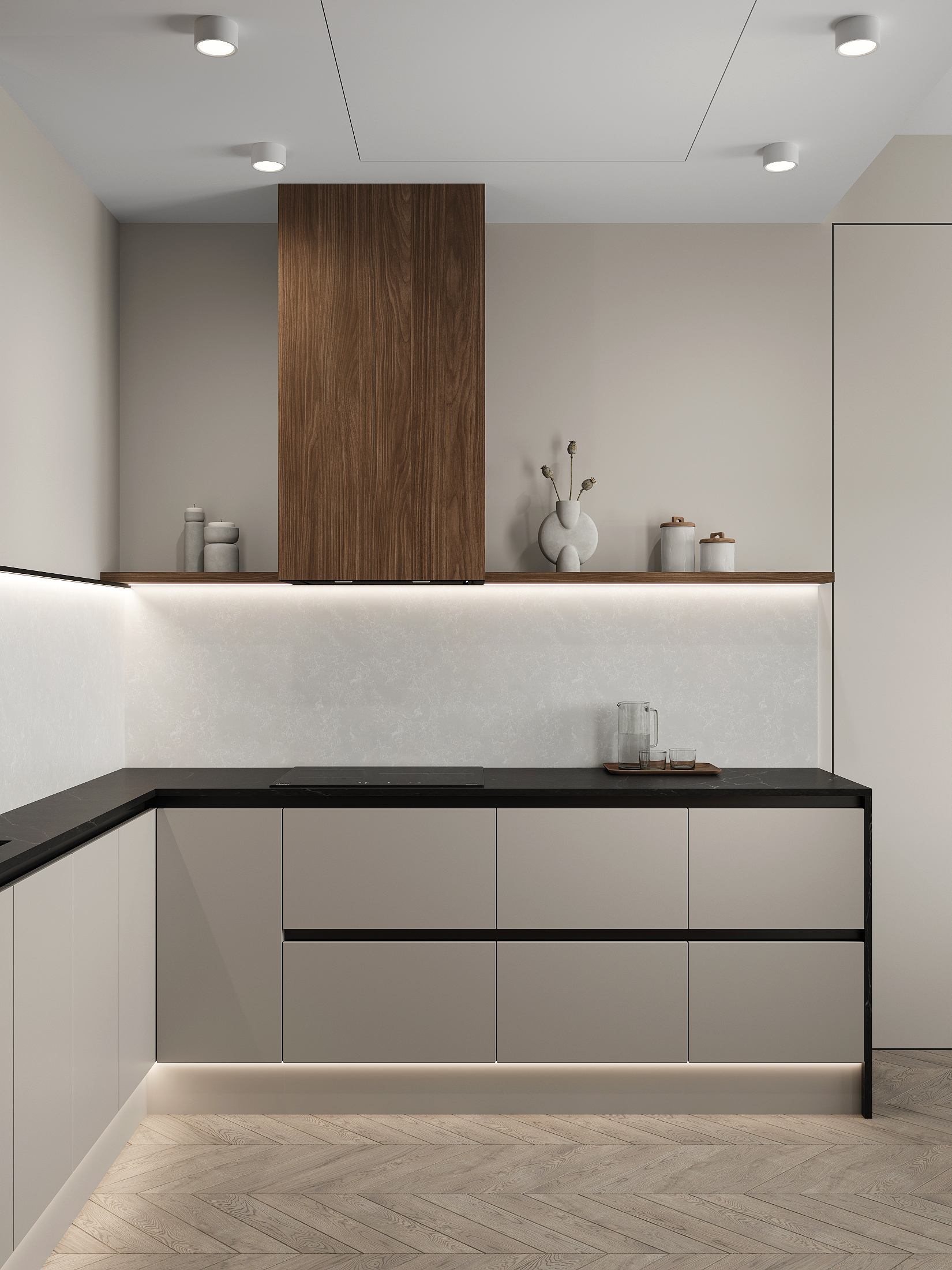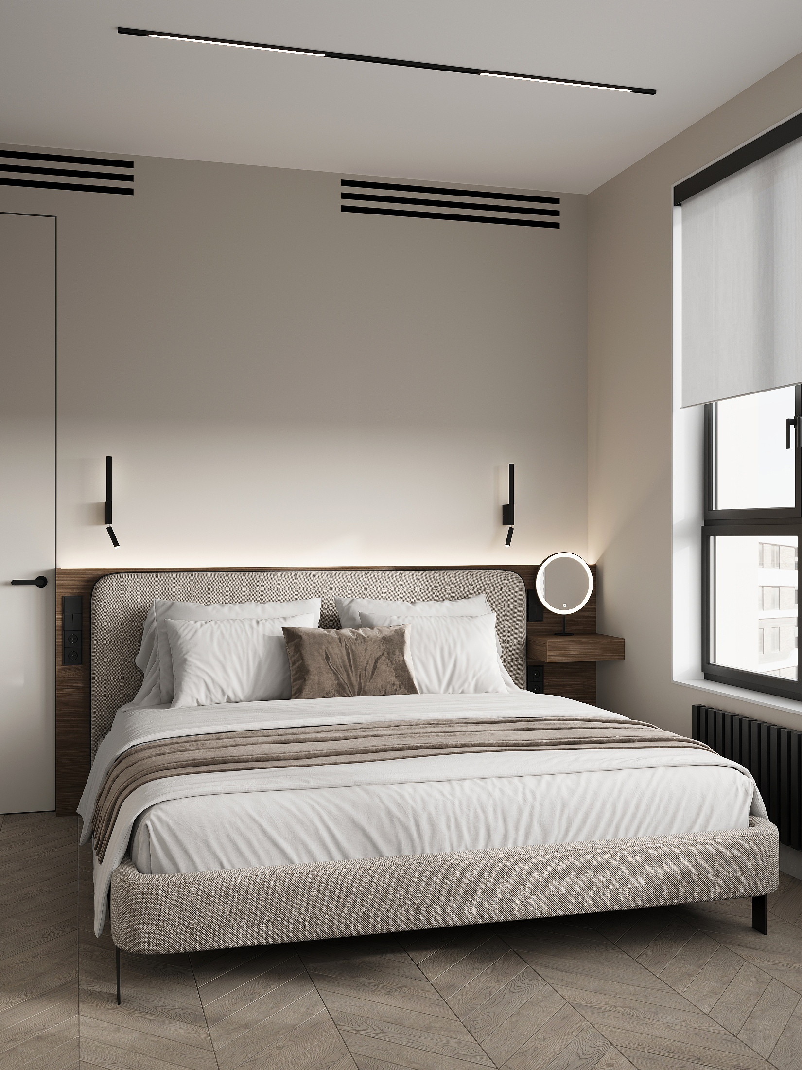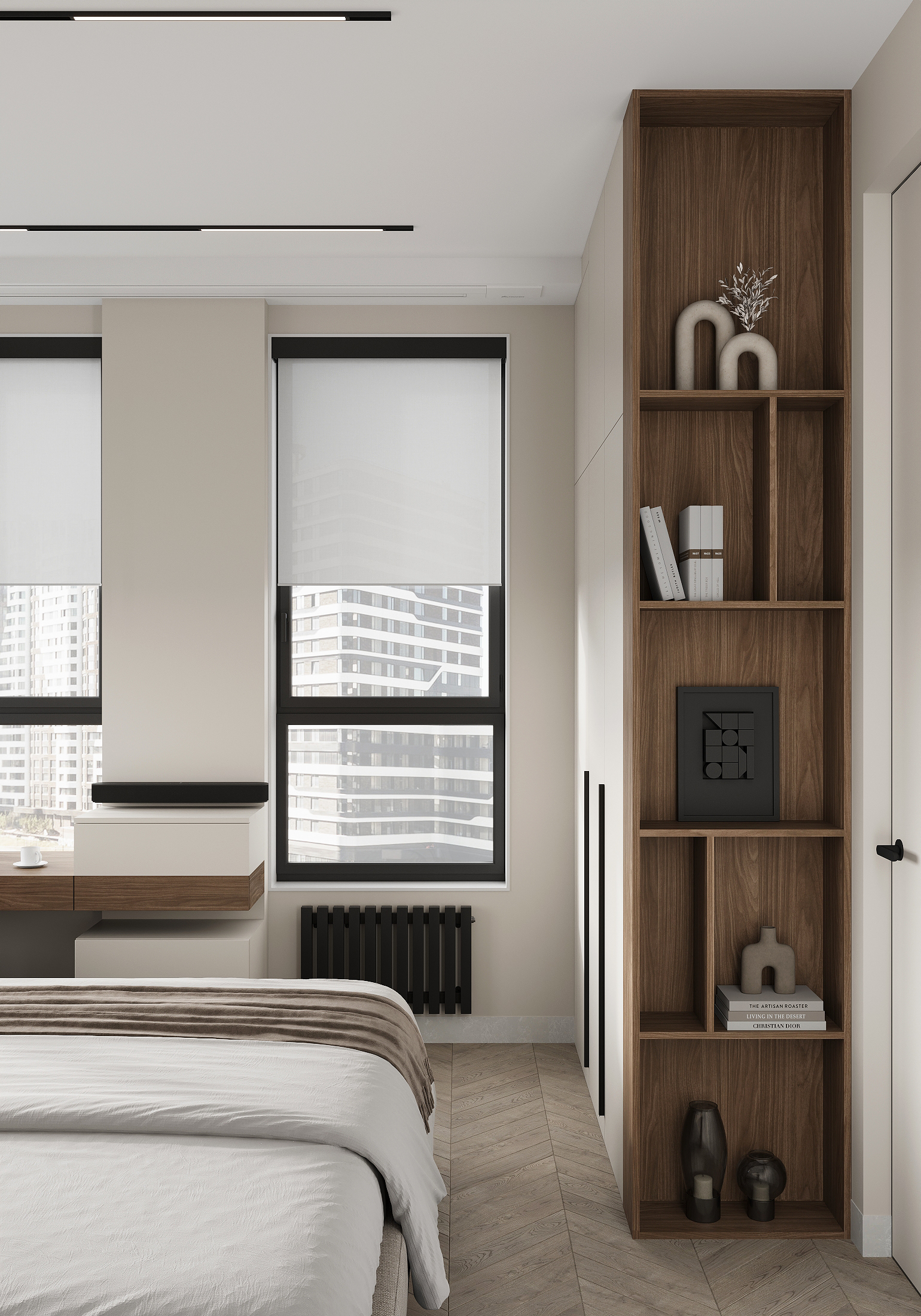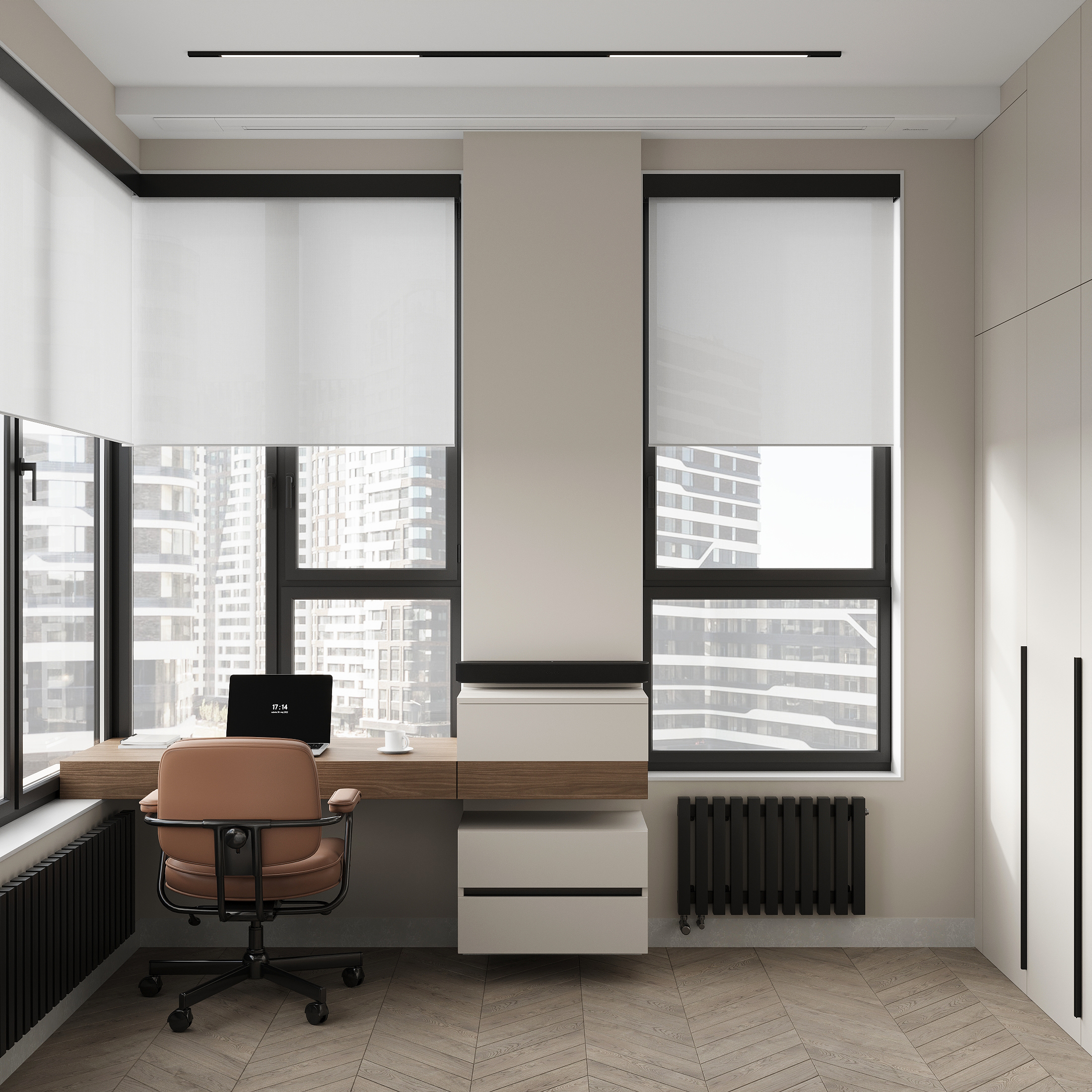 Квартира в «Символе» с её панорамными окнами и качественной отделкой — прекрасная основа. Мы получили не просто красивую квартиру в стиле минимализм, а высокотехнологичное, безопасное и максимально удобное пространство для жизни, где каждой вещи есть свое место, а интерьер будет расти и меняться вместе с вашей семьей. Сделан акцент на умных решениях, скрытом хранении и драматичном контрасте. Светлая, воздушная основа (стены, потолок, основной пол) как фон для насыщенных темных акцентов (кухонная столешница , мебельные фронты, трековое освещение). Вся мебель — многофункциональная и встроенная, техника — скрытая
