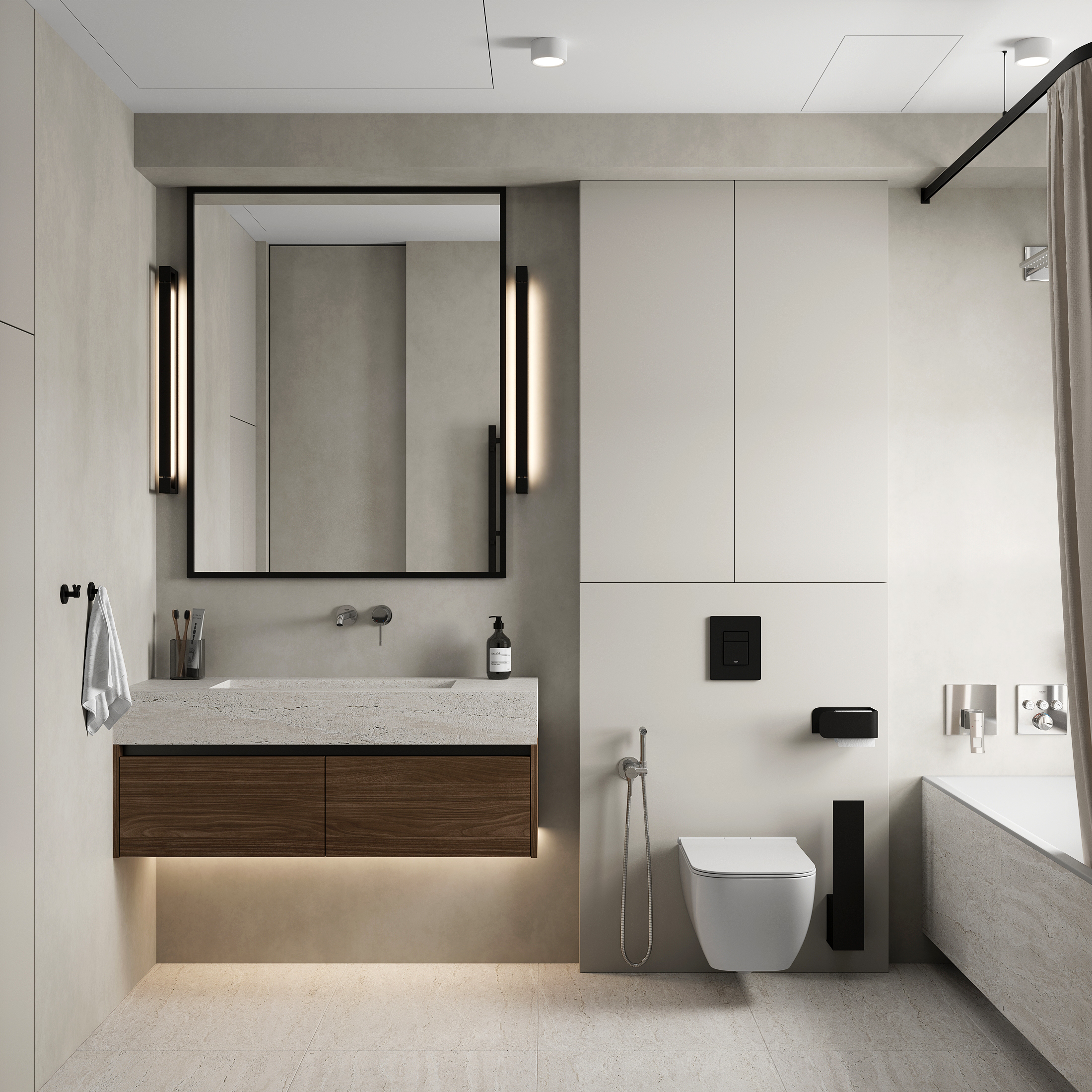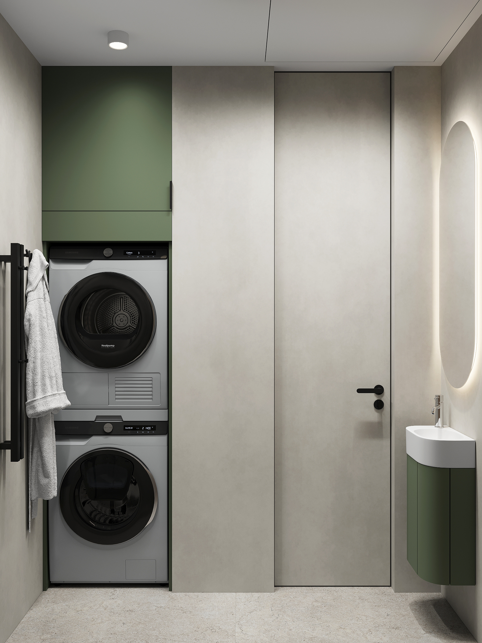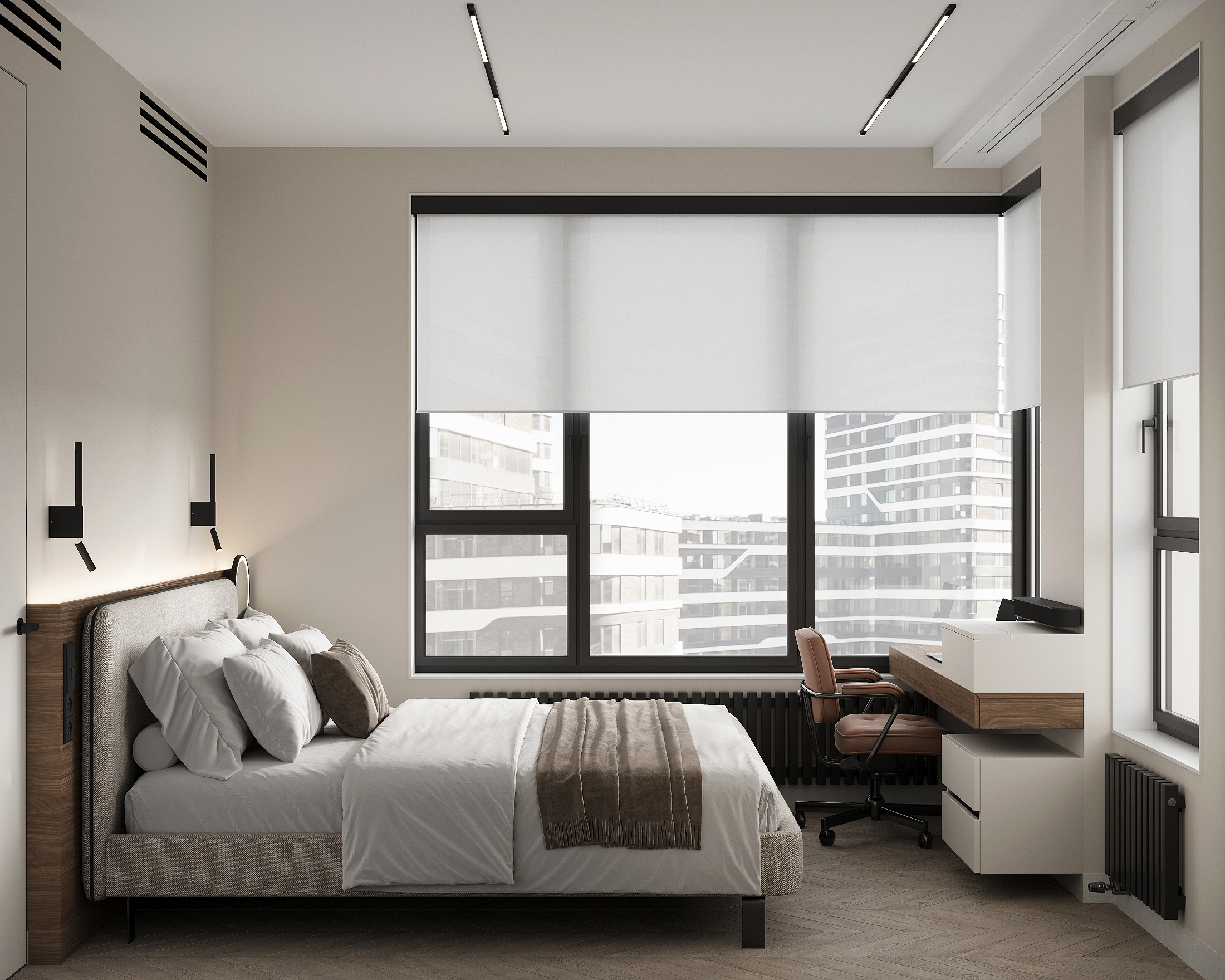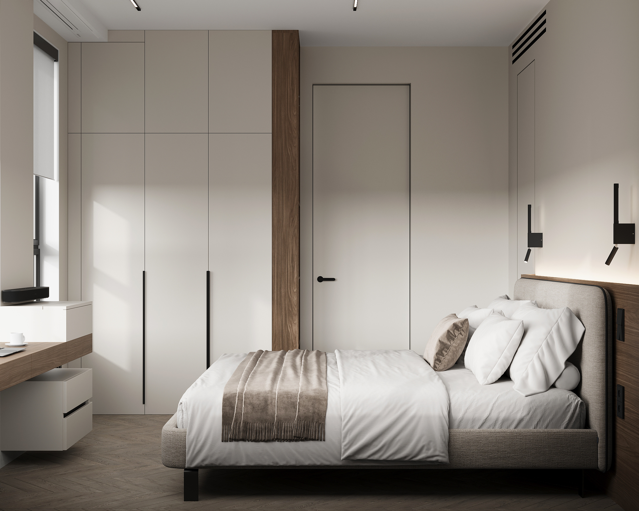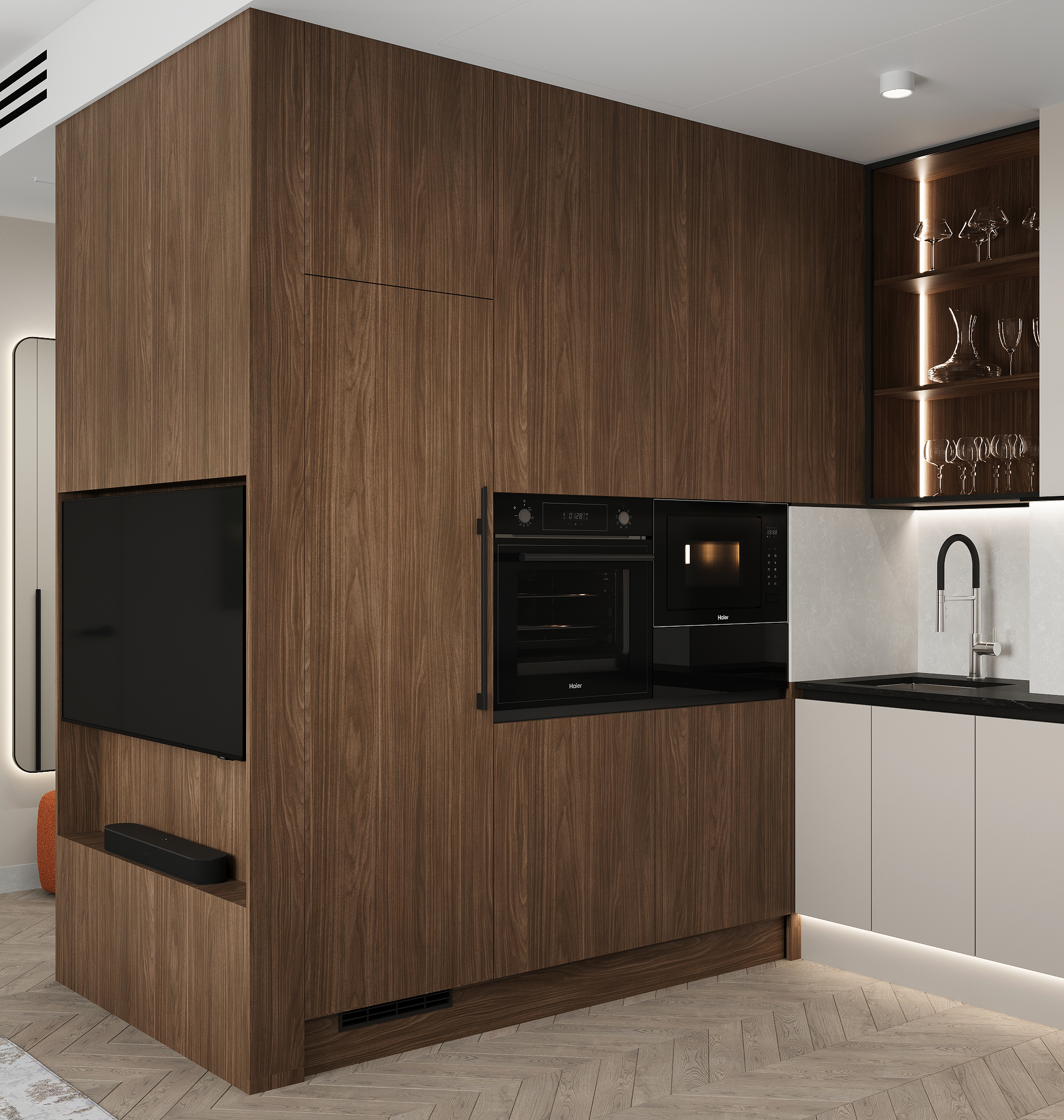 Квартира в «Символе» с её панорамными окнами и качественной отделкой — прекрасная основа. Мы получили не просто красивую квартиру в стиле минимализм, а высокотехнологичное, безопасное и максимально удобное пространство для жизни, где каждой вещи есть свое место, а интерьер будет расти и меняться вместе с вашей семьей. Сделан акцент на умных решениях, скрытом хранении и драматичном контрасте. Светлая, воздушная основа (стены, потолок, основной пол) как фон для насыщенных темных акцентов (кухонная столешница , мебельные фронты, трековое освещение). Вся мебель — многофункциональная и встроенная, техника — скрытая