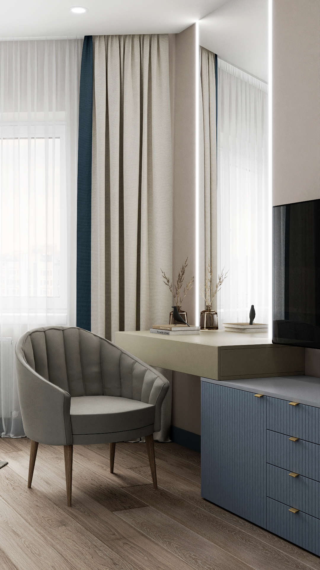 Дизайн интерьеров 3-х комнатной квартиры 116 кв.м. для семьи с дочкой. У этого проекта сложное планировочное решение. Дизайн всей квартиры пропитан скандинавски шармом. Это прослеживается в деталях, фактурах и цветовой палитре.